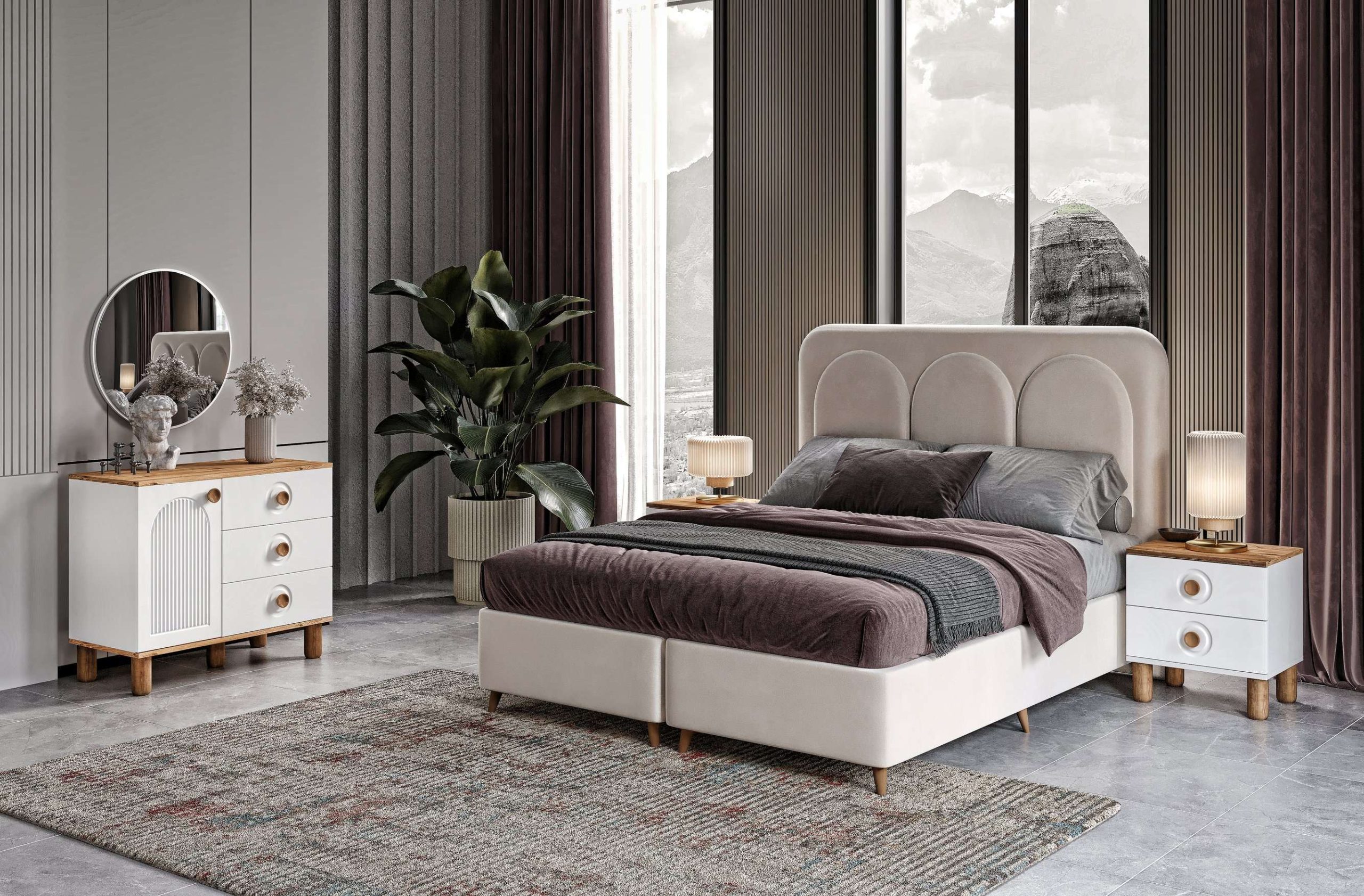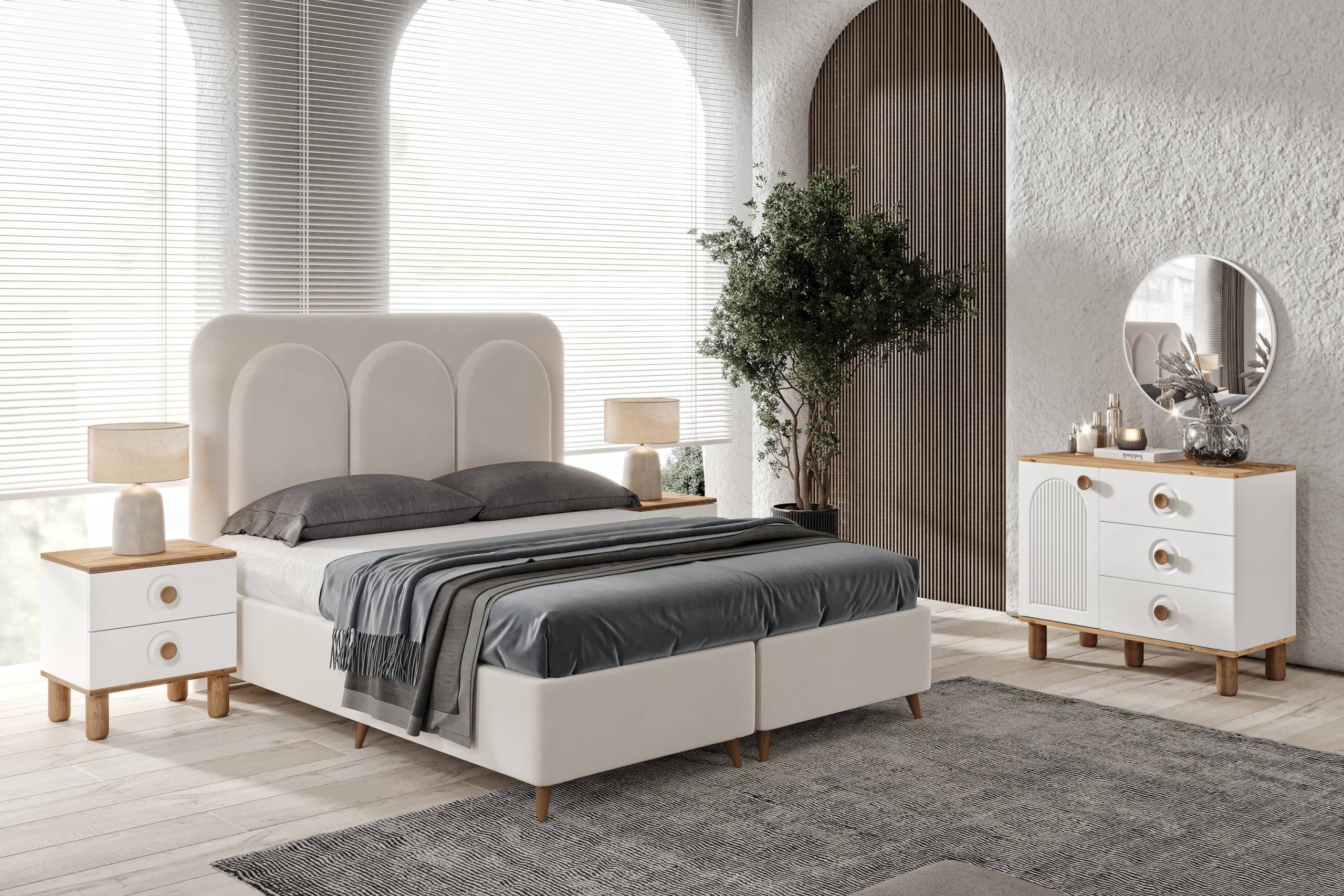 Bohem Ceviz Beyaz Yatak Odası Takımı