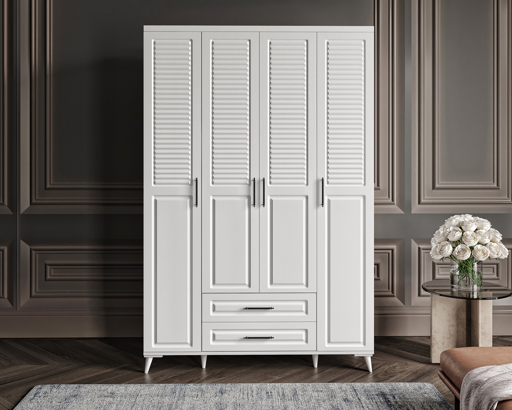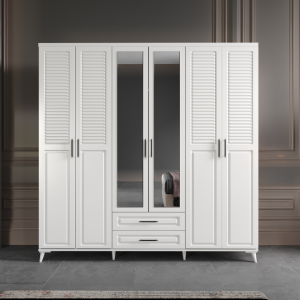 Sanat Beyaz 6 Kapaklı Aynalı Gardırop
