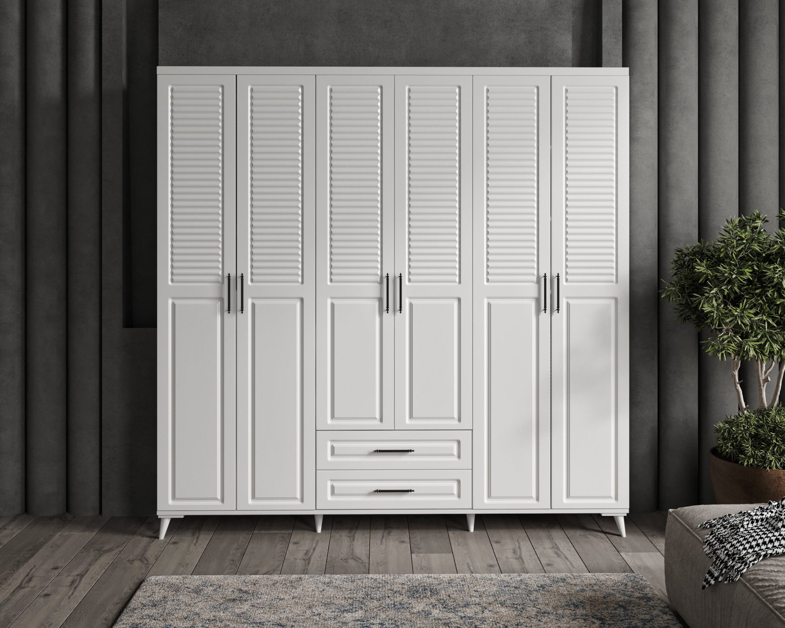 Sport 6 Kapaklı Yüklüklü Beyaz Gardırop