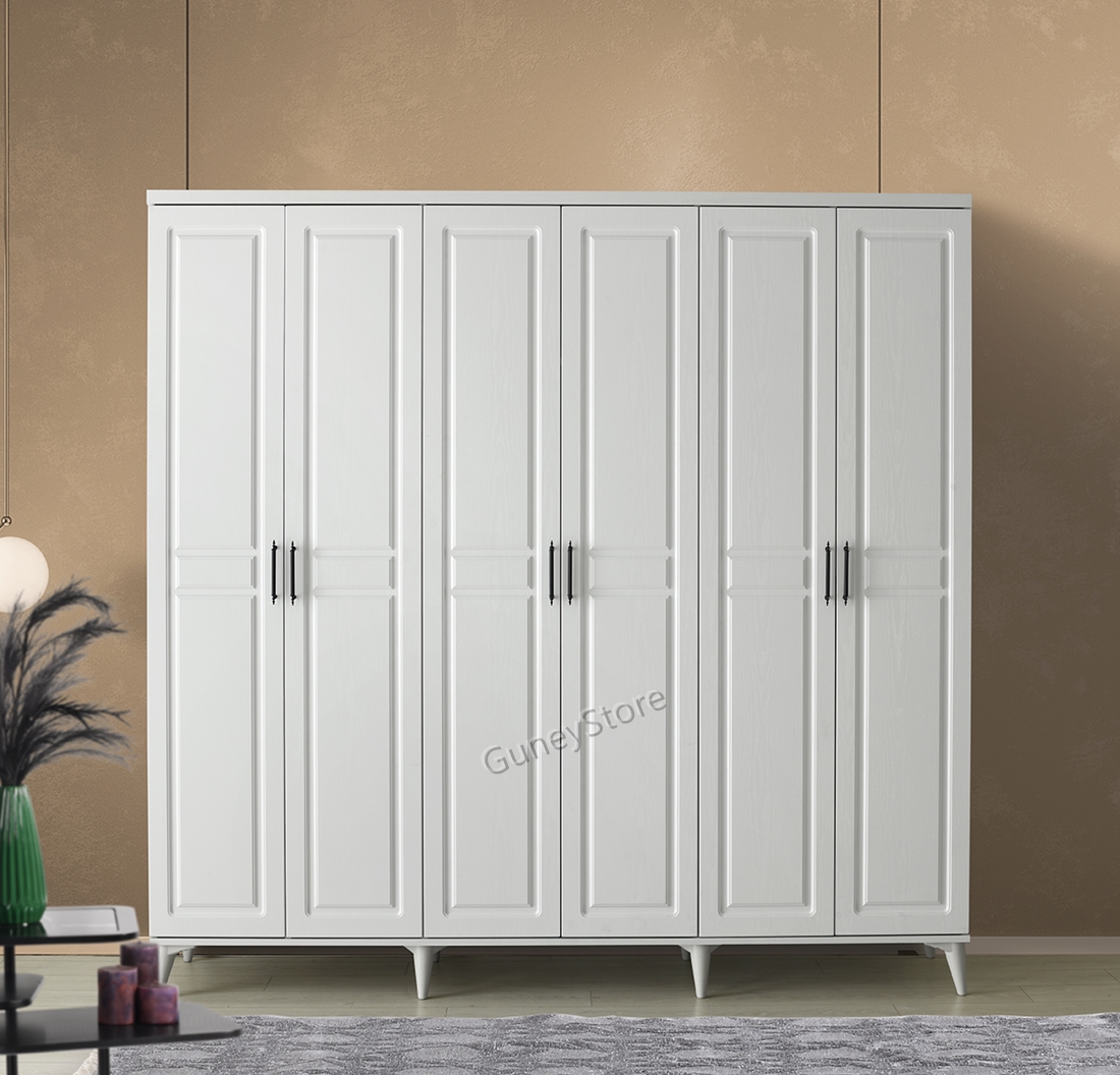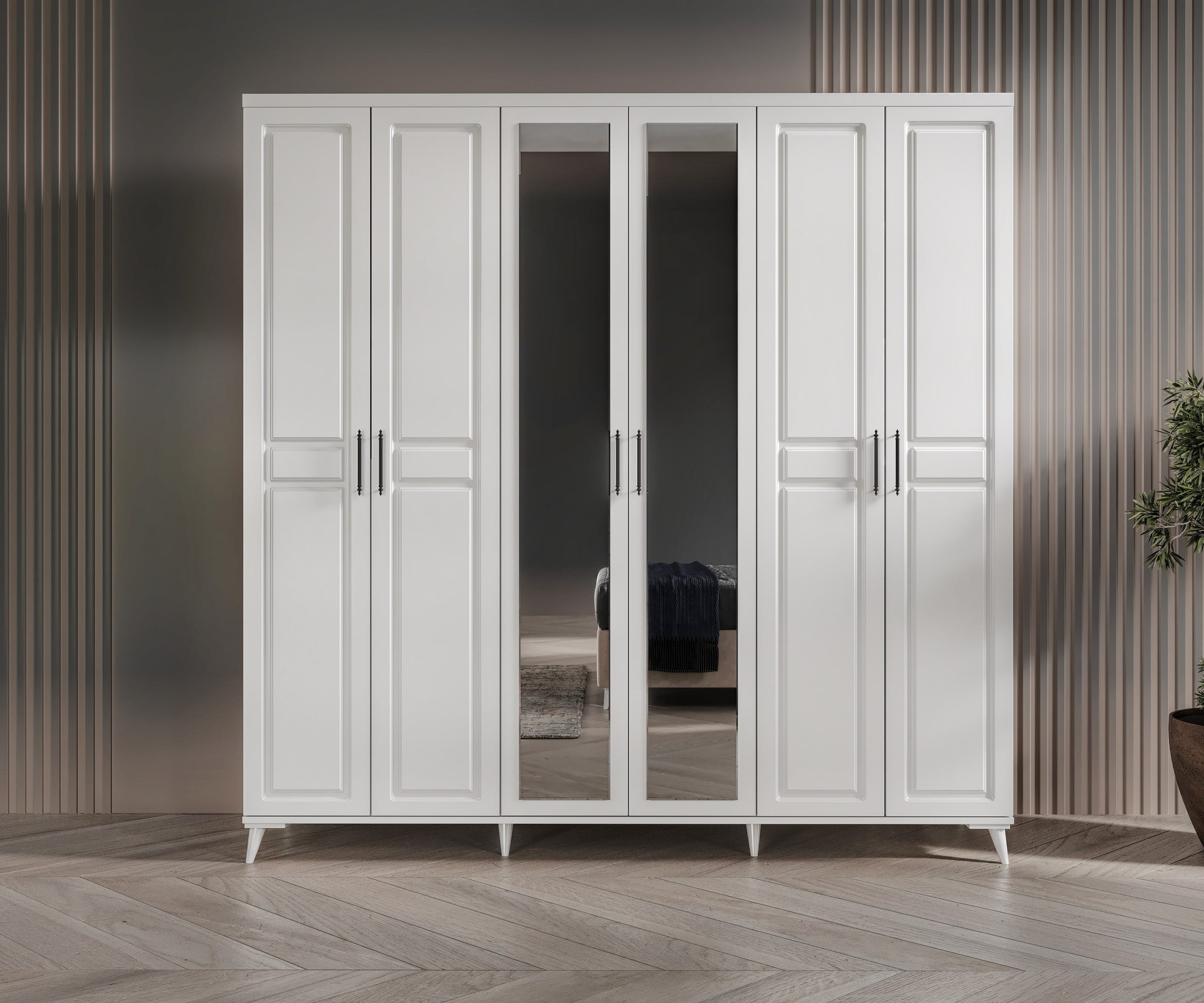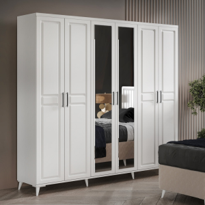 Sport Beyaz 6 Kapaklı Aynalı Gardırop