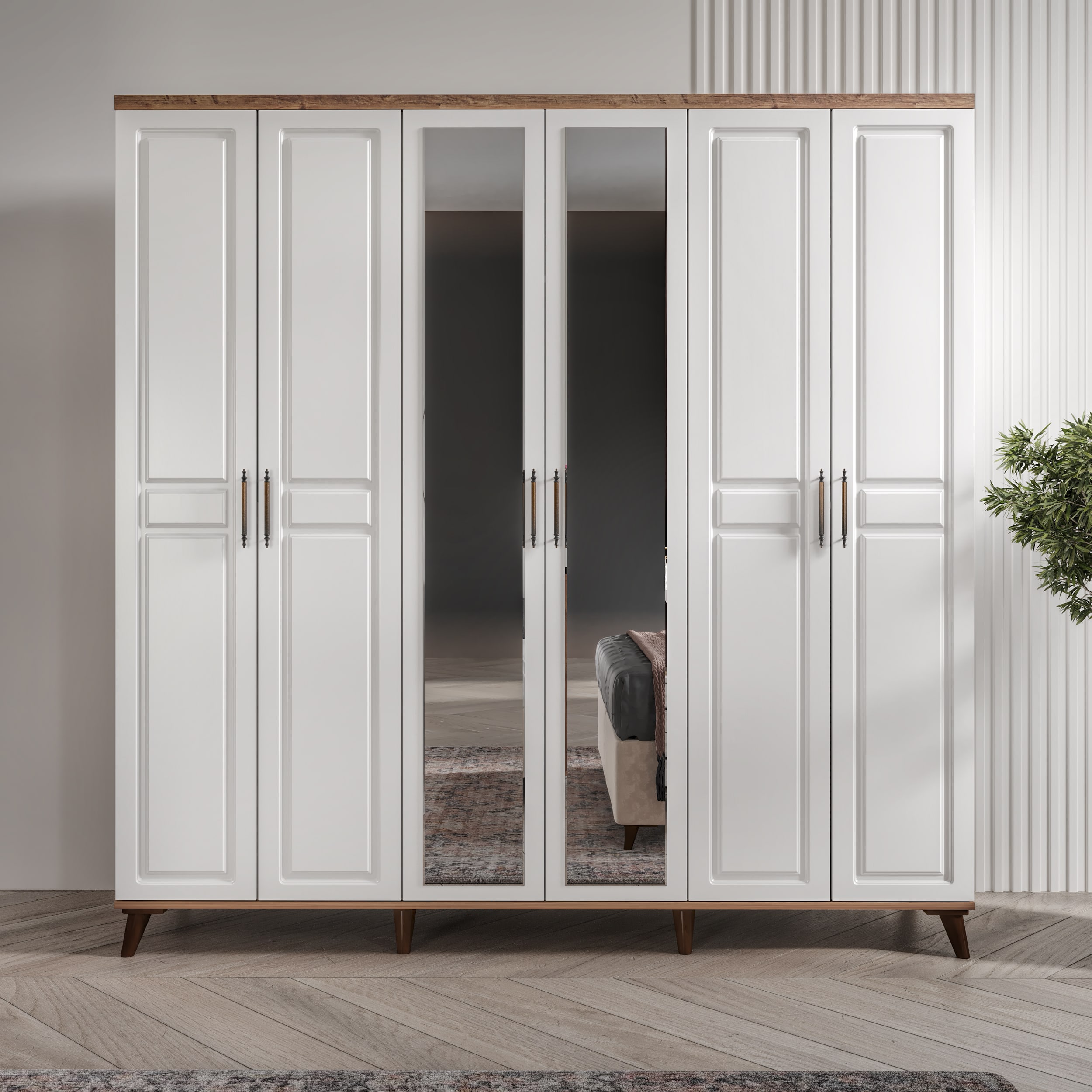 Sport Cevi̇z Beyaz 6 Kapaklı Aynalı Gardırop