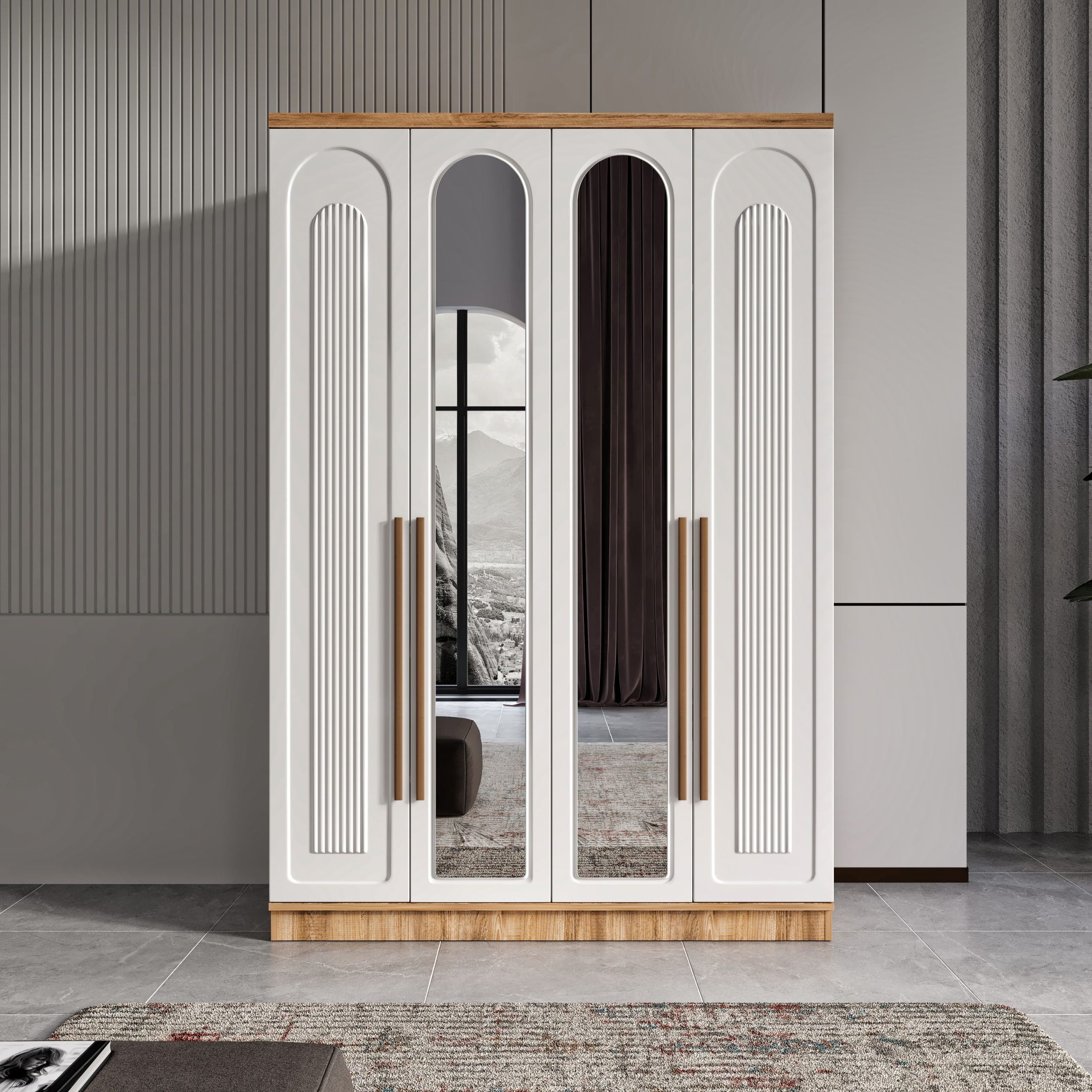 Flora 4 Kapaklı Aynalı Komple MDF Gardırop