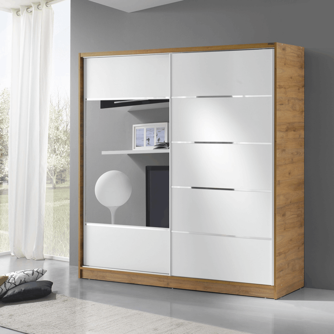 160 Cm Sürgülü Gardırop Ceviz+Beyaz