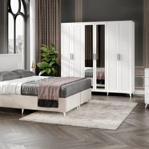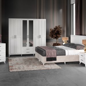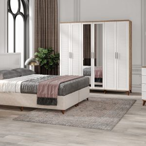 Geniş ve Fonksiyonel Depolama Alanı : Takım içeriği, geniş depolama alanları sunan 1 adet 6 kapaklı gardırop, 2 adet şık komodin, 1 adet aynalı şifonyer ve 1 adet zarif başlık içerir. Eşyalarınızı düzenli bir şekilde saklamanız için tasarlanmıştır.