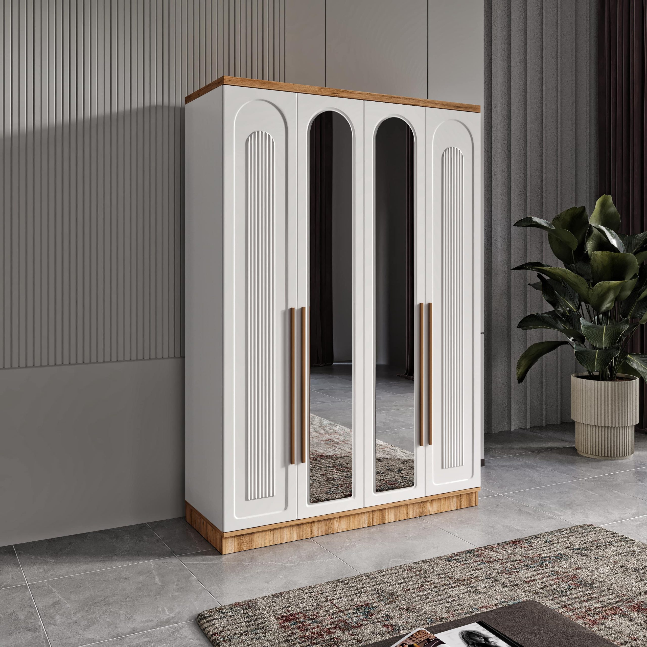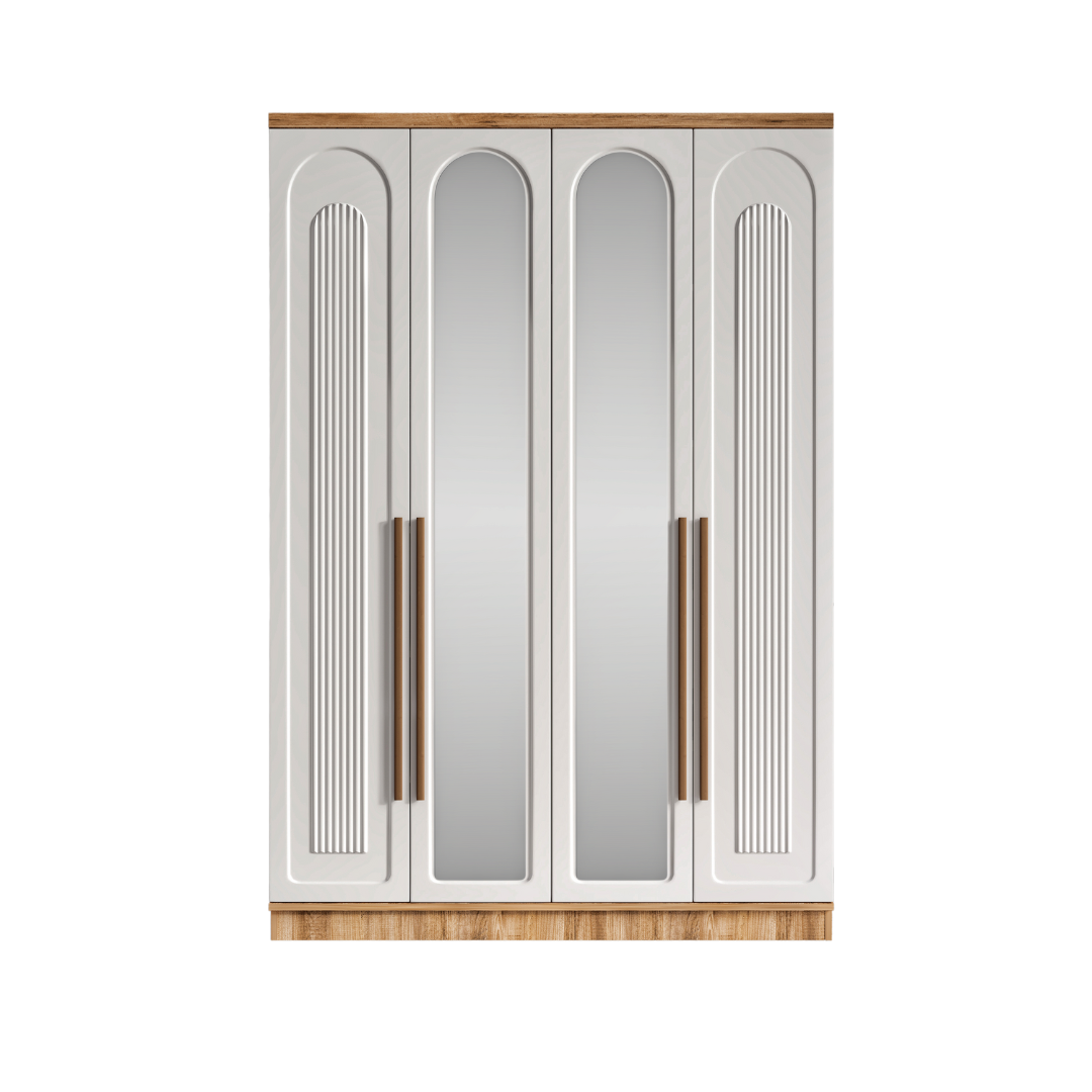 Flora 4 Kapaklı Aynalı Komple MDF Gardırop
