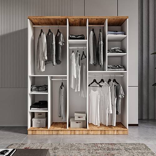 Flora 5 Kapaklı Aynalı Komple MDF Gardırop