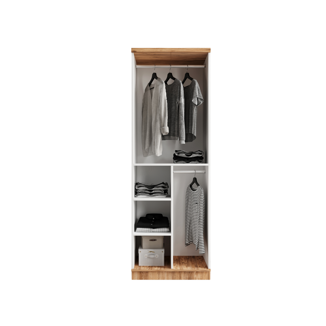 Fonksiyonel İç Düzen: Askı alanları ve raf sistemleri, kıyafetlerinizi düzenli bir şekilde yerleştirmenize yardımcı olur. Kompakt yapısına rağmen geniş saklama alanı sunar.