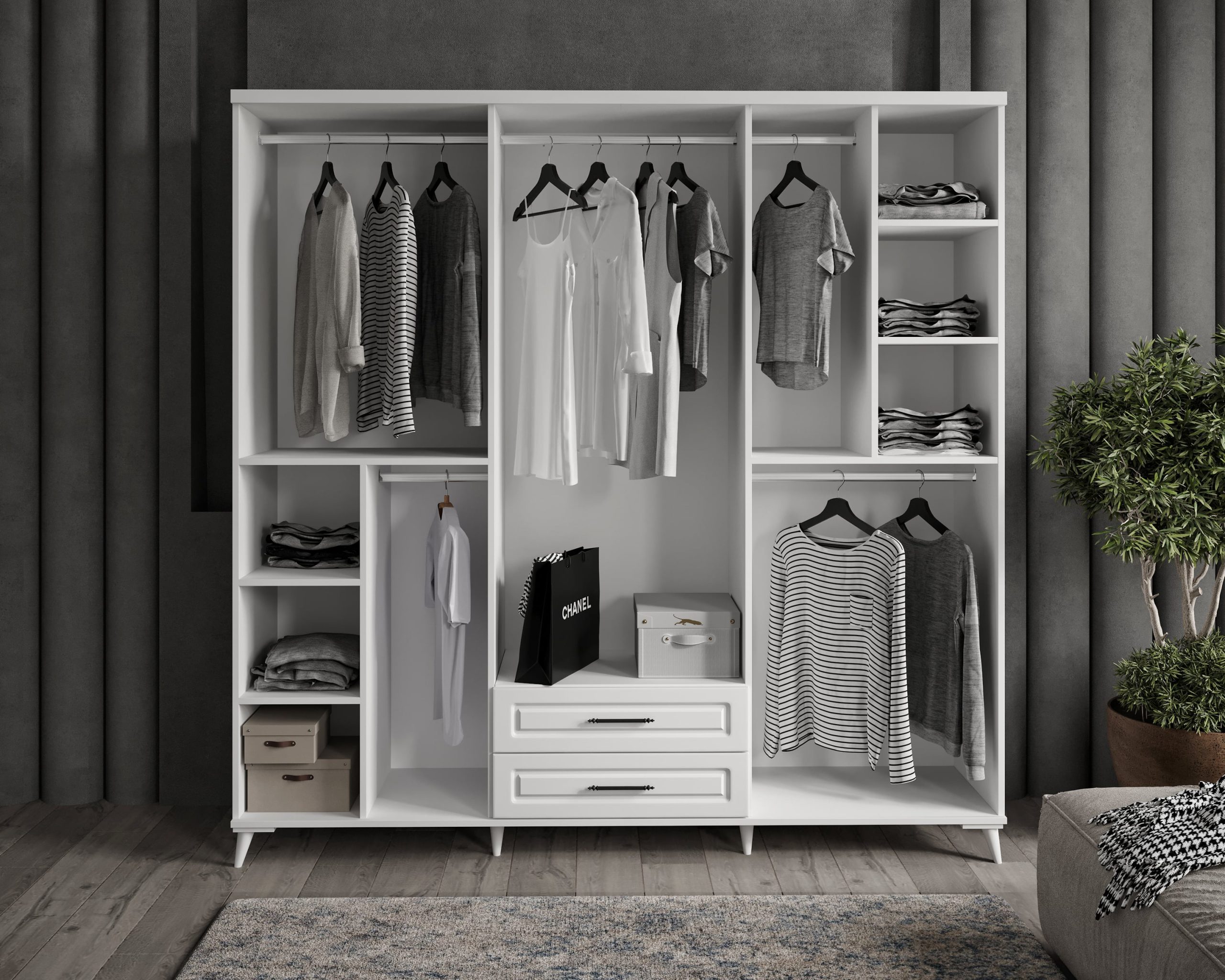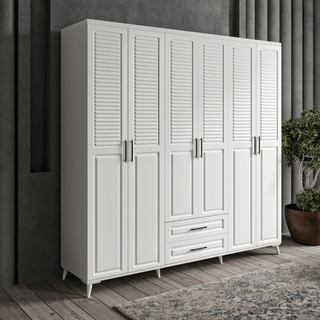 Sanat Beyaz 6 Kapaklı Gardırop