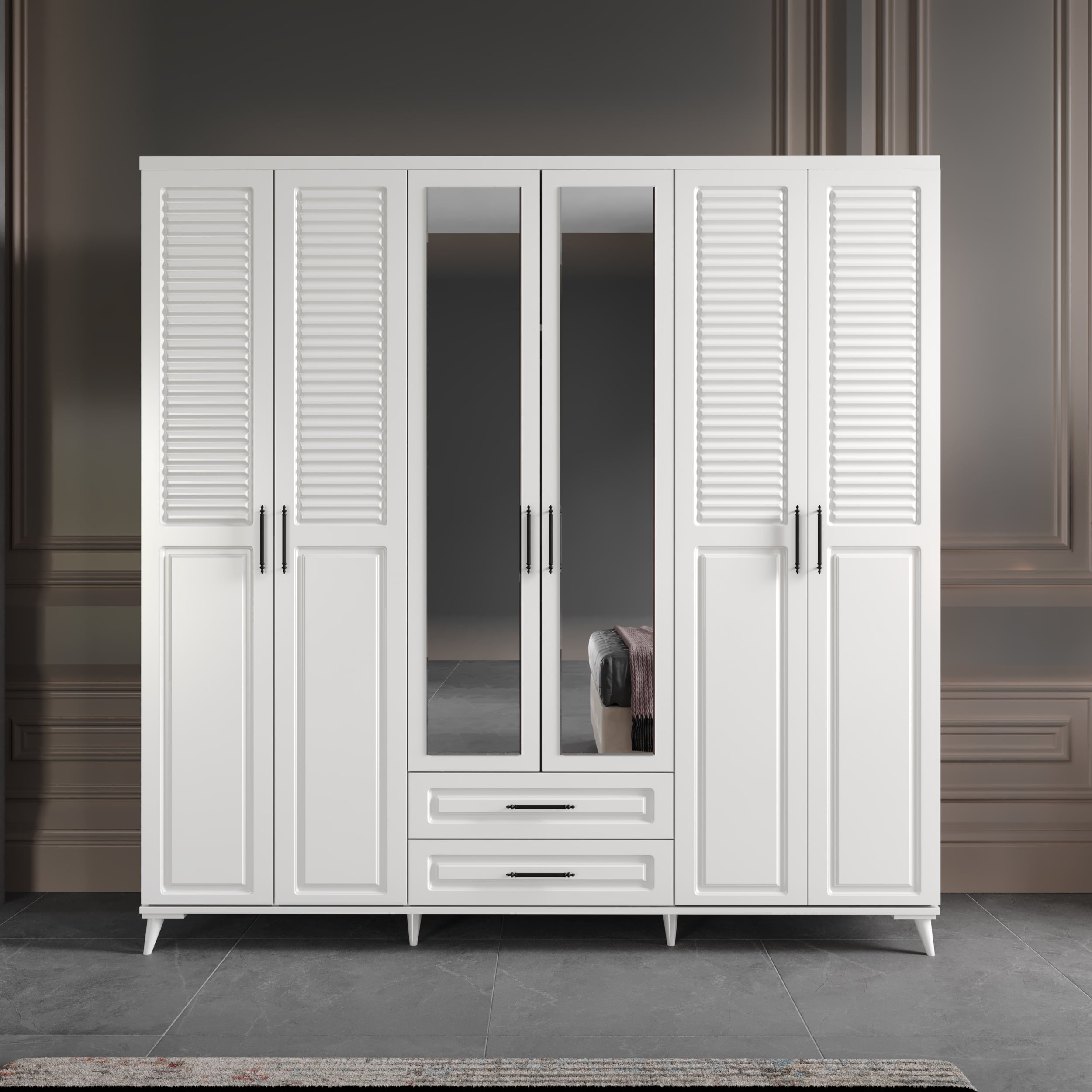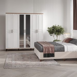 1 Adet gardırop, 1 Adet aynalı şifonyer, 2 Adet komodin, 1 Adet başlık